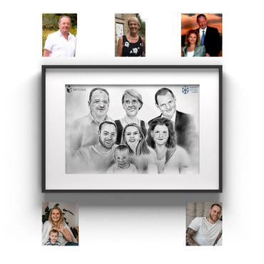 Mehrere Fotos zu einer Familienzeichnung vereint. Lade Fotovorlage hoch und unsere Künstler kümmern um den Rest!