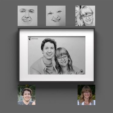 Individuelles Portrait aus mehreren Fotos zeichnen lassen. Manchmal steht man vor der Problematik, dass man mehrere Personen auf einem Portrait zusammenbringen möchte, es aber kein gemeinsames Bild gibt.
